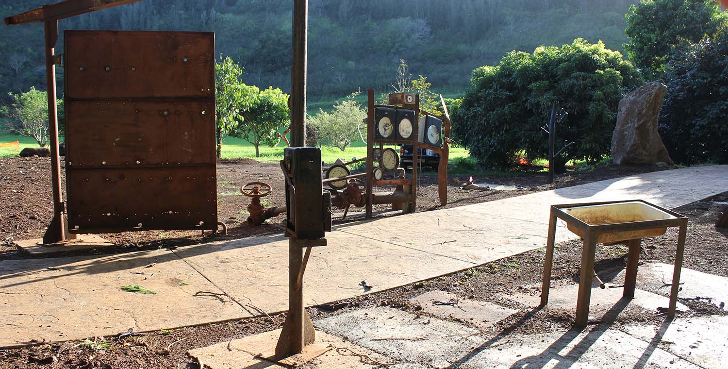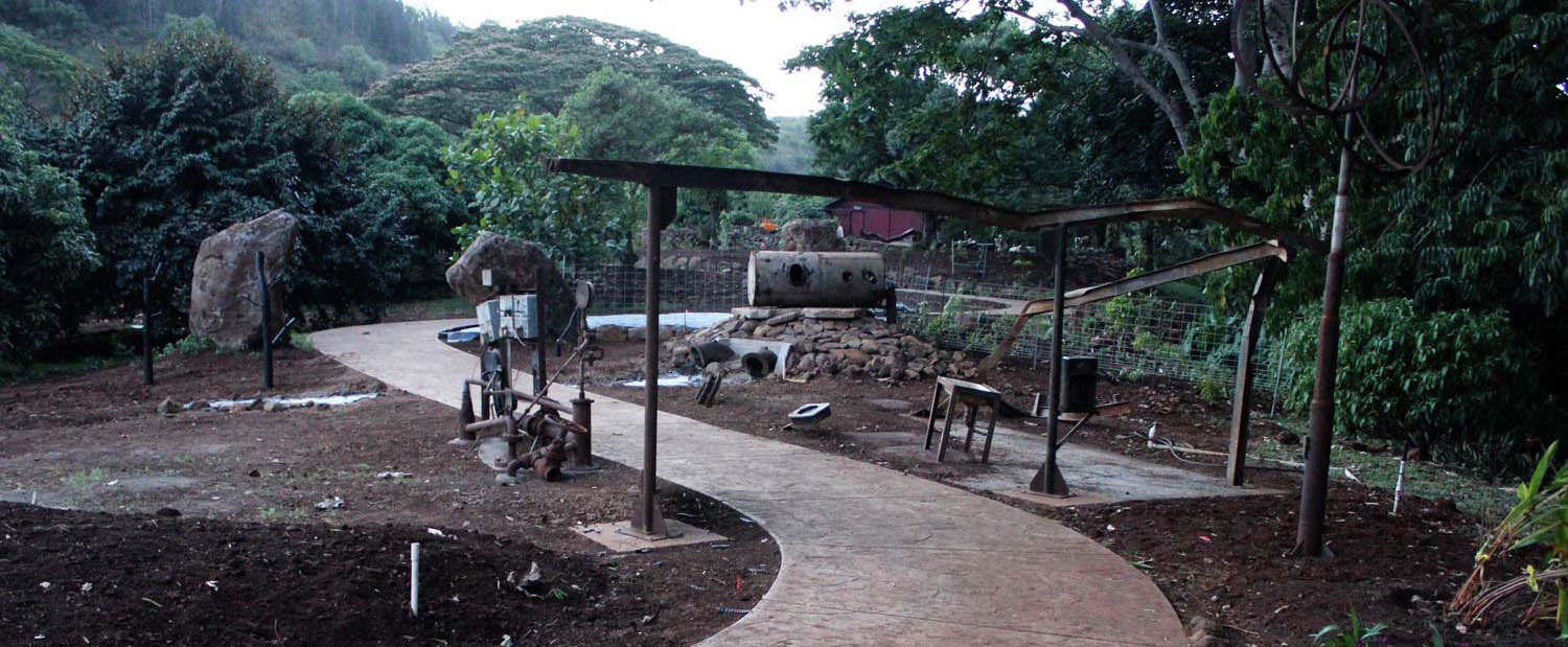 So Wayne has worked with Wing and Andy to develop a concept that will use found objects representing a heavy industrialized time (from the disused Koloa Sugar Mill).