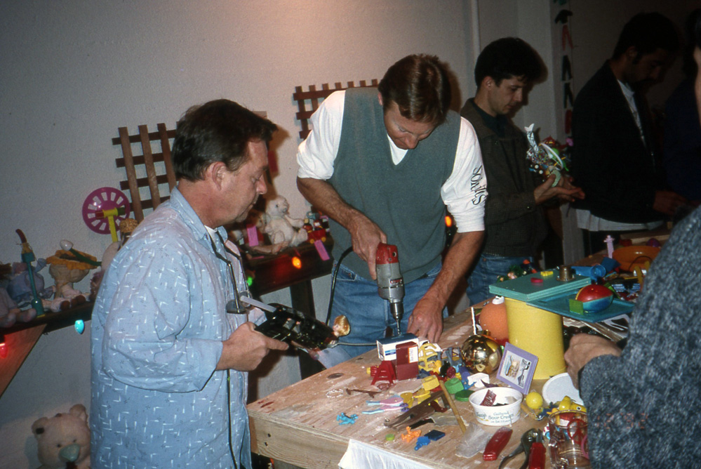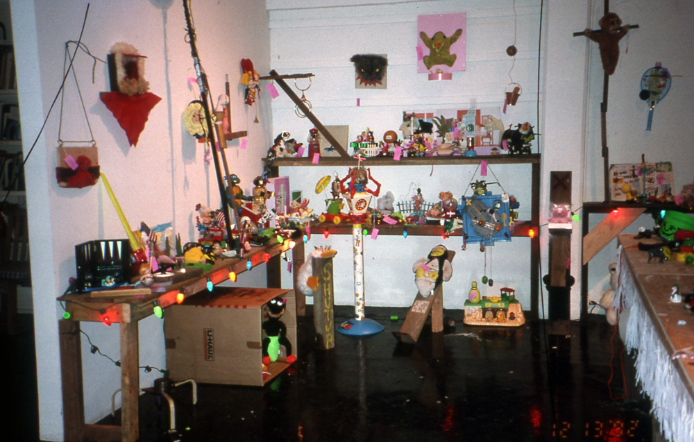 The Toy Factory was a five year annual art event / store / performance / recycling / FUNdraising / cocoon of creative love inhabited by all walks of life. Broken toys were made into sculptural objects and resold to the public. You could be a creator an observer, and a buyer of some of the most amazing conceptual artworks imagined. All proceeds went to toys for tots Christmas toy giveaway.